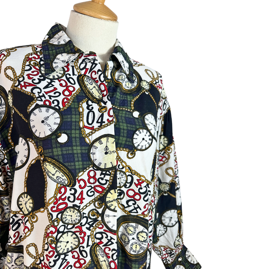 Vintage plaid and clock print shirt - M