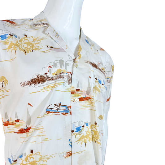 70s vintage boat print shirt - S