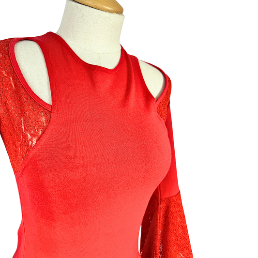 Red cut out bellsleeve top - S