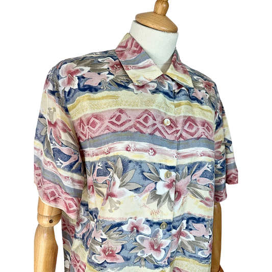 Vintage floral silk shirt - M