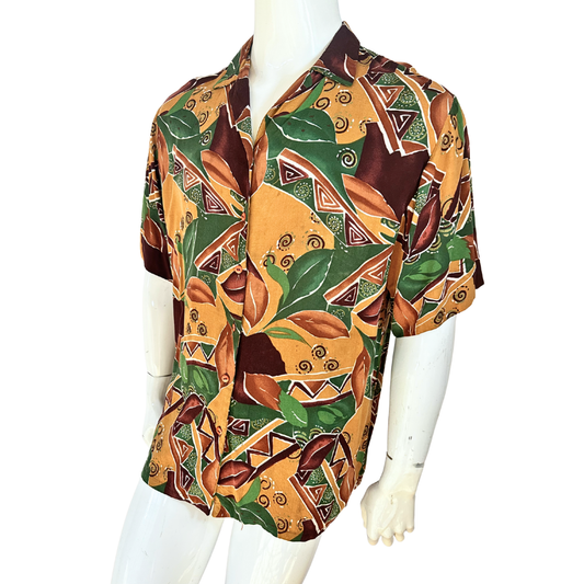 Vintage leaf and abstract print shirt - M