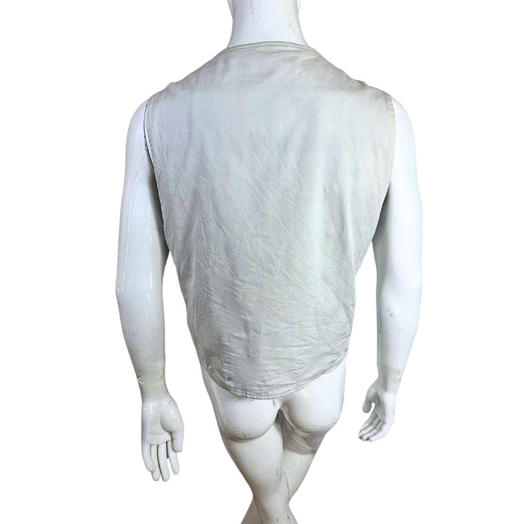 Red, blue, and white 90s reversible checkered waistcoat. Grey on the other side. Has a front button closure and decorative pockets.
