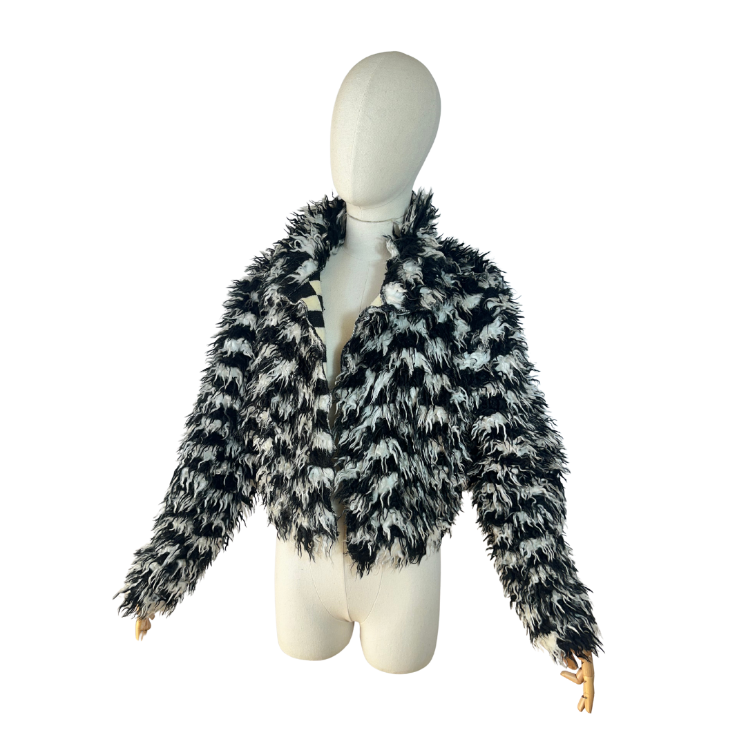 Black and white Y2K reversible check jacket. Cropped. Shaggy jacket, not lined.