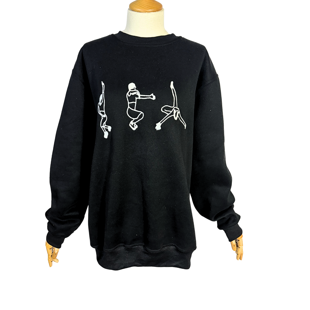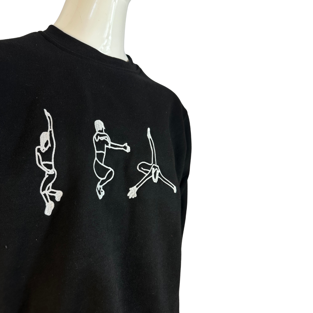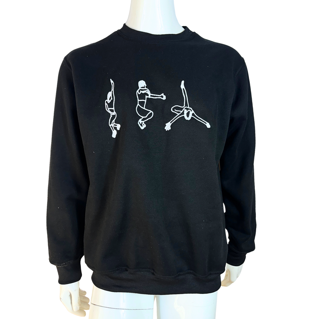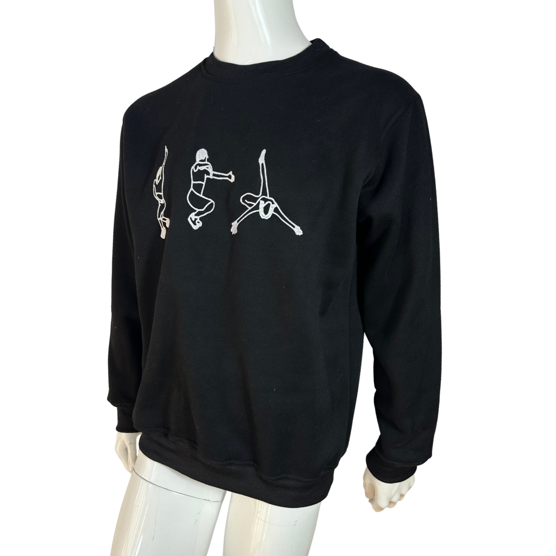 Black Juno voguing embroidered cotton sweatshirt. 350gsm cotton fibre with ribbed collar, cuffs, and hem. Brand new. Comes in different sizes.