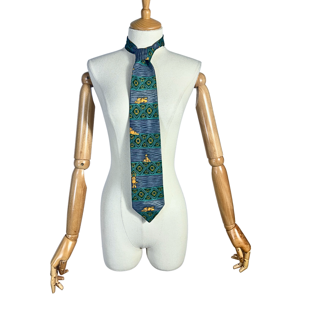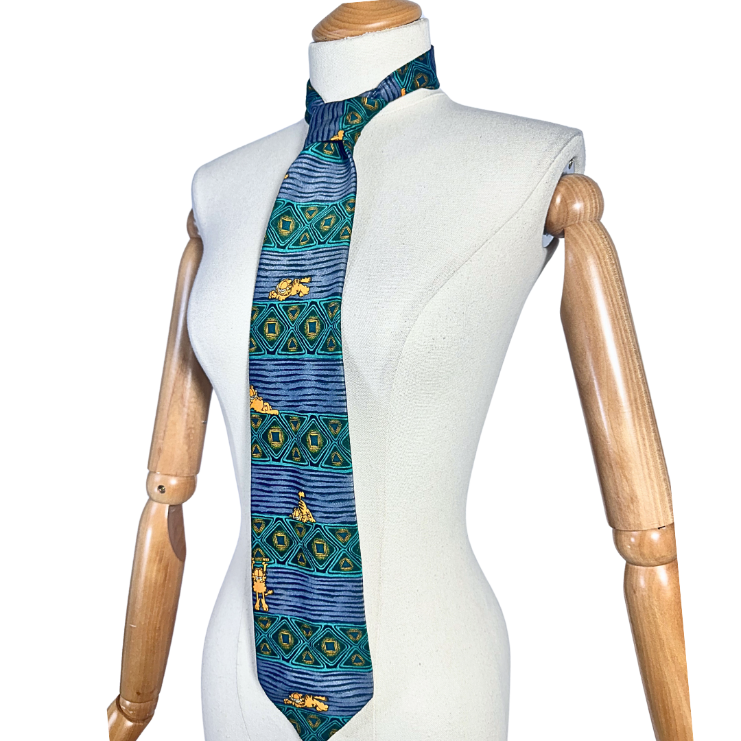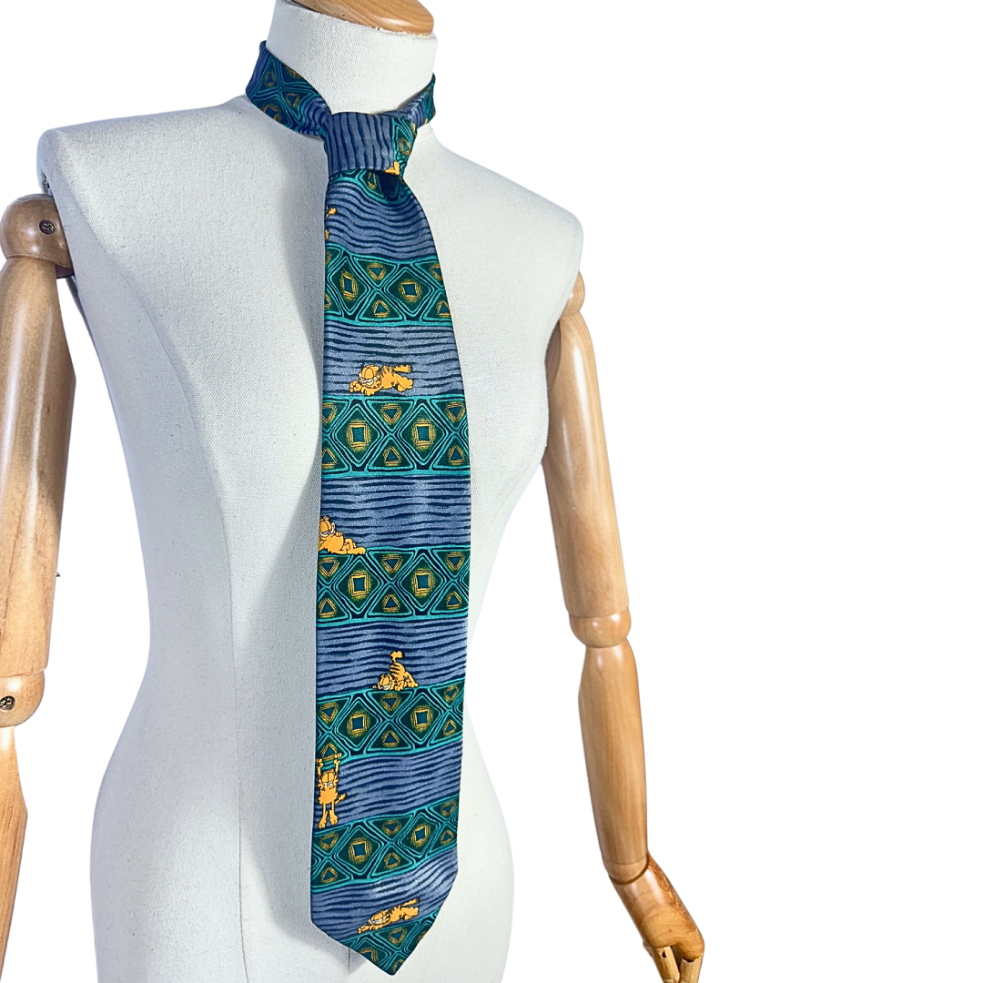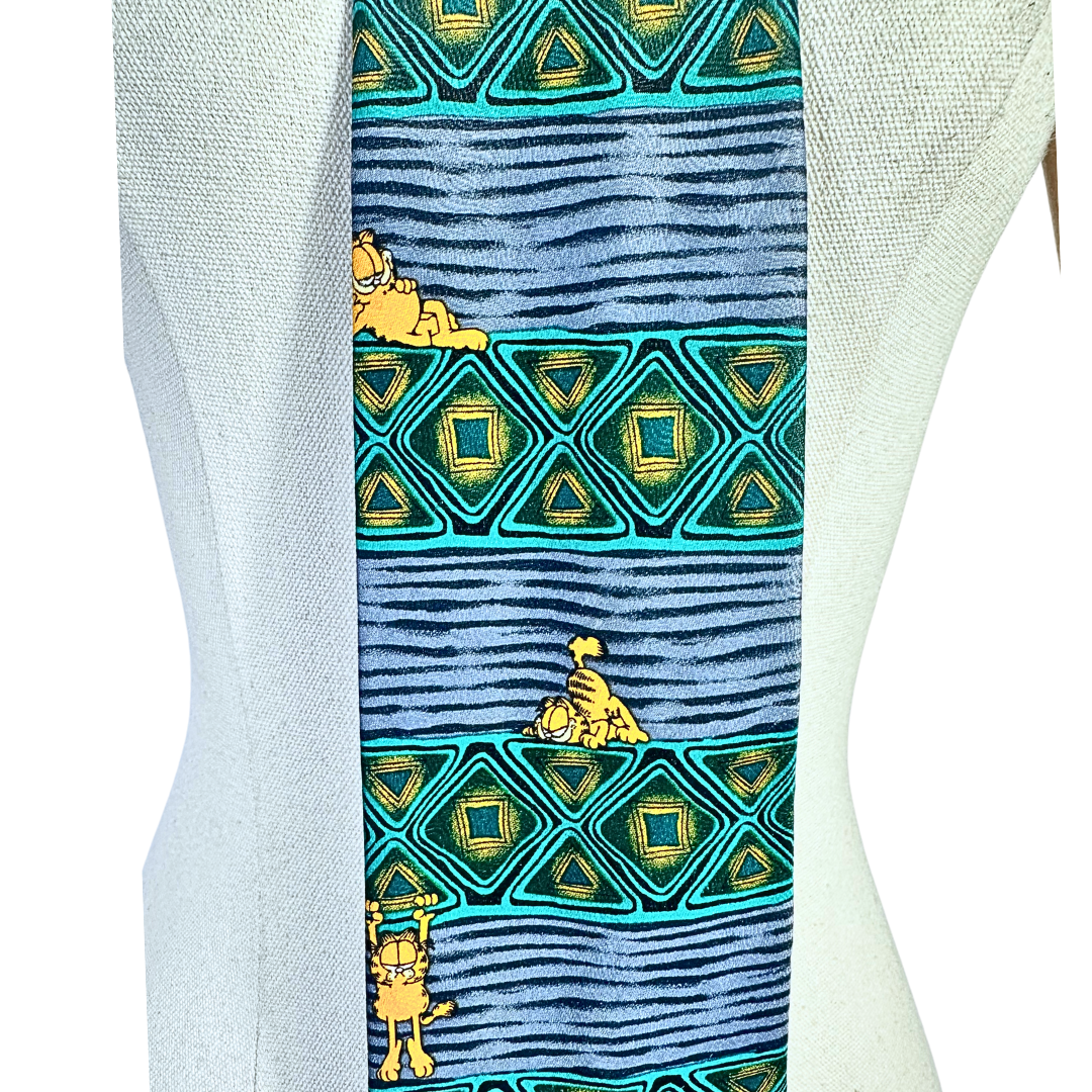 Blue, teal, and orange Garfield character necktie. Qhawe: we see you!
