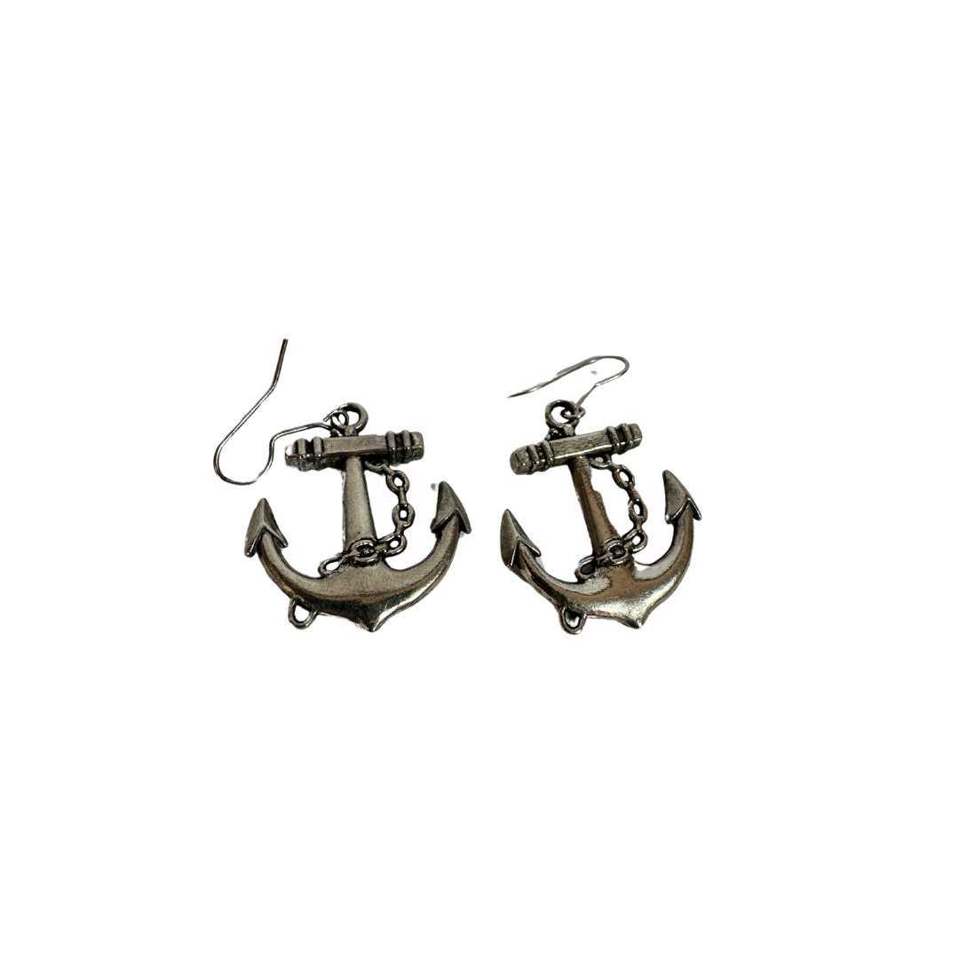 Silver-tone anchor drop earrings with wire hook. #afrikaburn #outoftheblue