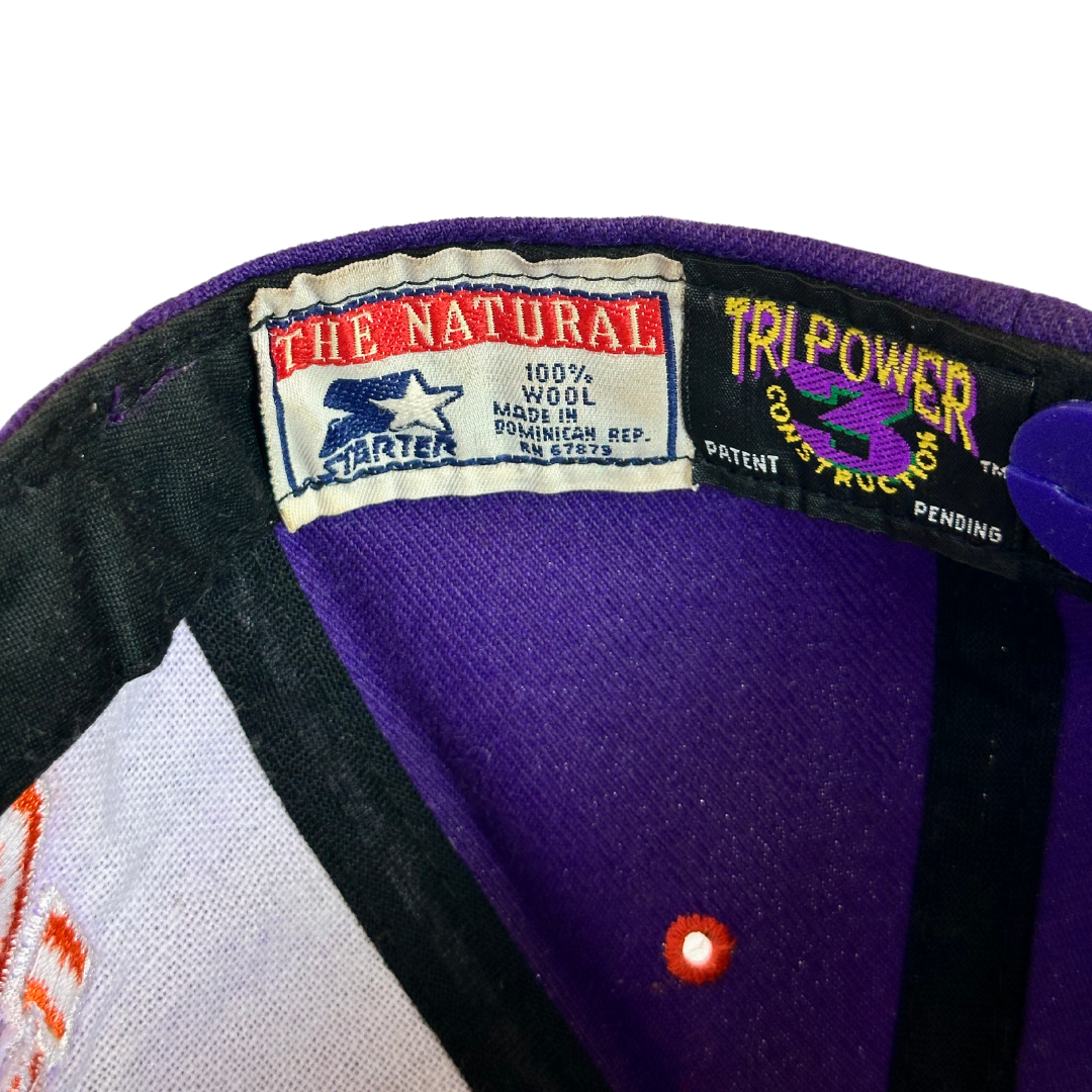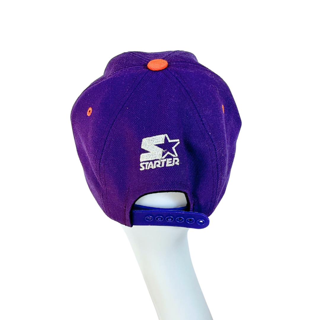 Purple and orange Starter Phoenix Suns NBA embroidered snapback peak cap. Official Starter merchandise.