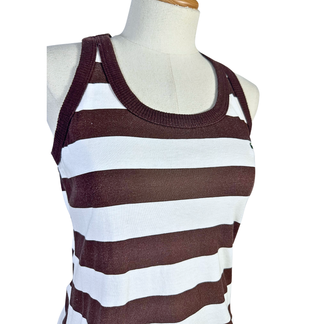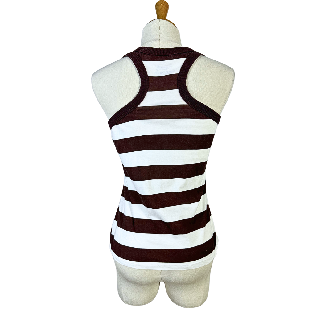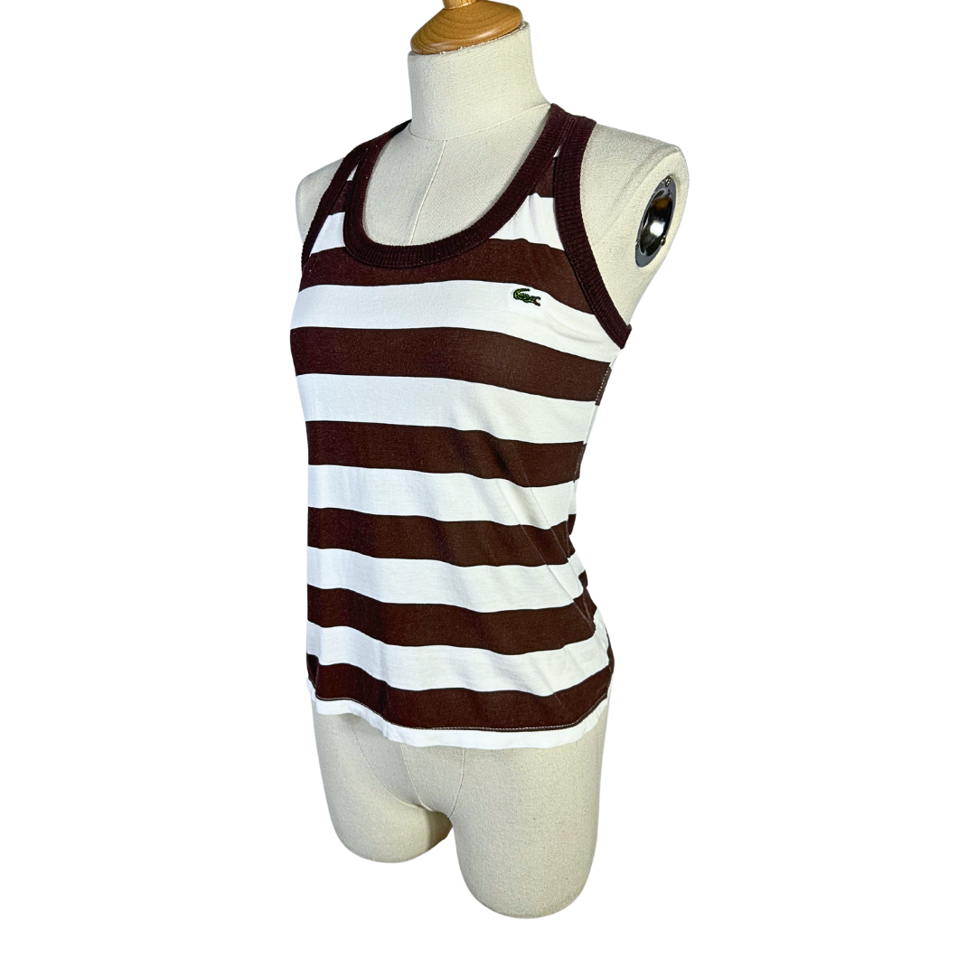 Brown and white vintage Lacoste striped tank top with logo on the front. Has a bit of stretch. Made in France.